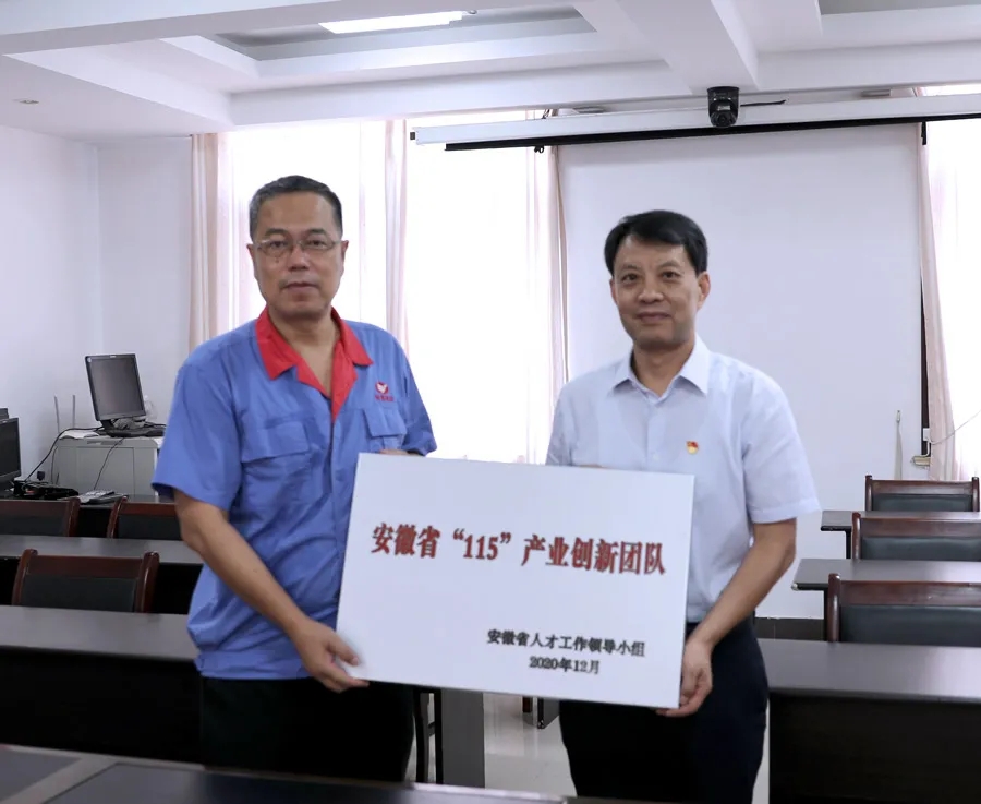 近日,安徽省人才工作領(lǐng)導(dǎo)小組辦公室下發(fā)第十三批“115”產(chǎn)業(yè)創(chuàng)新團隊名單,此次評審全省僅評選出50個“115”產(chǎn)業(yè)創(chuàng)新團隊,公司TFT-LCD光學(xué)膜用PVA研發(fā)創(chuàng)新團隊成功入選。9月28日下午,省國資委企業(yè)領(lǐng)導(dǎo)人員管理處處長金進率隊來公司,為公司創(chuàng)新團隊授牌。